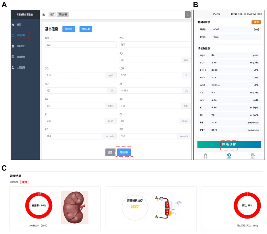 为促进临床应用,我们基于最终模型开发了一款智能决策支持系统,提供网页版和安卓移动应用两种格式。这一步其实相当重要!