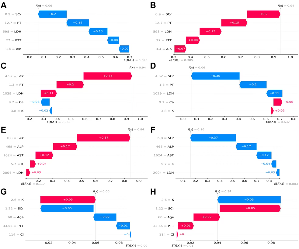 参考文献:Liu C, Shi J, Wang F, Li D, Luo Y, Yang B, Zhao Y, Zhang L, Yang D, Jin H, Song J, Guo X, Fan H, Lv Q. Development and validation of an interpretable multi-task model to predict outcomes in patients with rhabdomyolysis: a multicenter retrospective cohort study. EClinicalMedicine. 2025 Aug 21;87:103438. doi: 10.1016/j.eclinm.2025.103438.