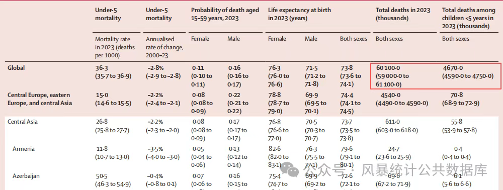 研究结果表明,2023年全球发生了6010万例死亡,其中467万例为5岁以下儿童死亡。