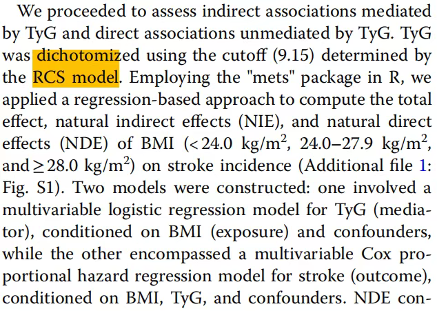 文章题目:甘油三酯-葡萄糖指数(TyG)和体重指数对中国中老年人脑卒中风险的交互作用和联合作用以及TyG的中介作用:一项全国性前瞻性队列研究