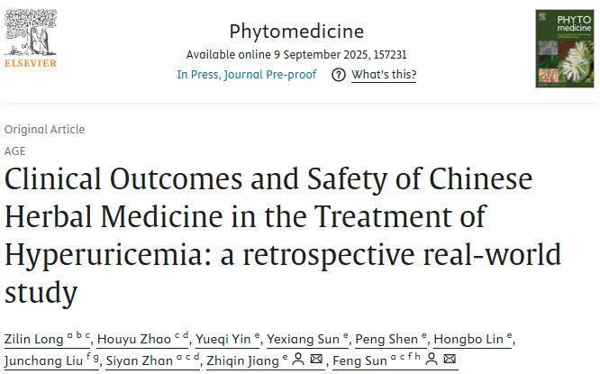 2025年9月9日,北京大学公共卫生学院流行病学与生物统计学系孙凤教授团队在《Phytomedicine》(医学一区,IF=8.3)发表了一项回顾性真实世界研究。
