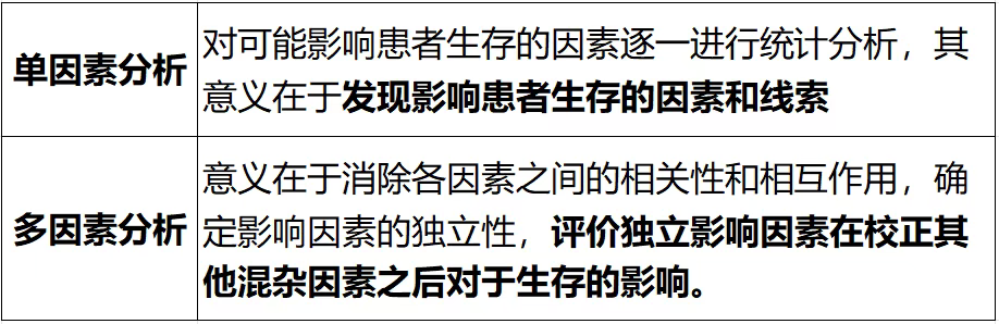 单因素分析联合多因素分析,常用来探讨肿瘤患者生存的影响因素。