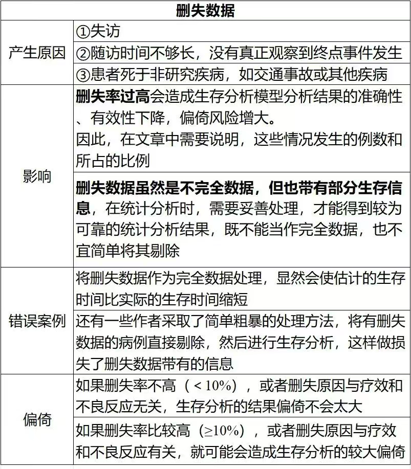 由于随访质量决定了生存数据的质量,对生存分析结果有重要影响,因此,应该在论文的方法中说明从事随访工作的人员(是否专业,是否经过了统一培训)、随访方式、随访时间、随访内容、失访情况等,以便读者了解生存资料的获取过程,评估生存数据的质量,其中比较关键的是随访时间和失访情况。