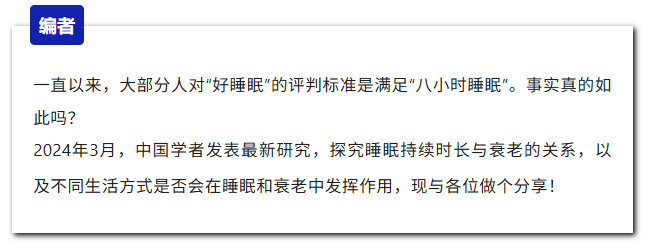 这意味着,过长过短的睡眠时间都促进生物学衰老。
