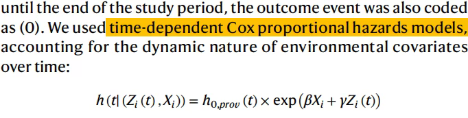 1.Cox比例风险模型 :使用了时间依赖的Cox比例风险模型,考虑了随时间随环境协变量变化的动态性质。