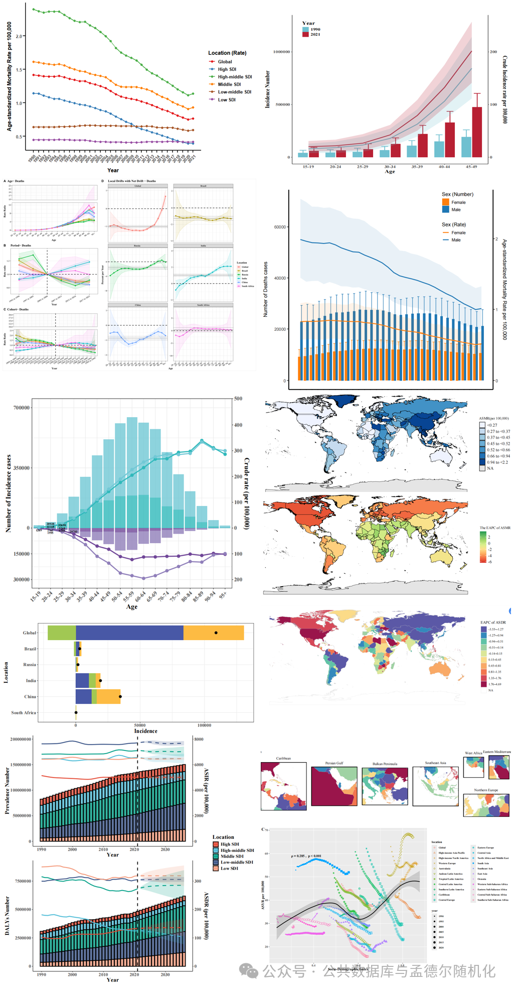 郑老师团队开发的ZGBD R包,各种复杂的图——疾病负担趋势图;金字塔图;专业世界地图;Joinpoint趋势图;APC效应图;分解分析图;双轴图、趋势线图;前沿曲线图;SDI相关性图。。。都能够两三行代码轻松搞定。