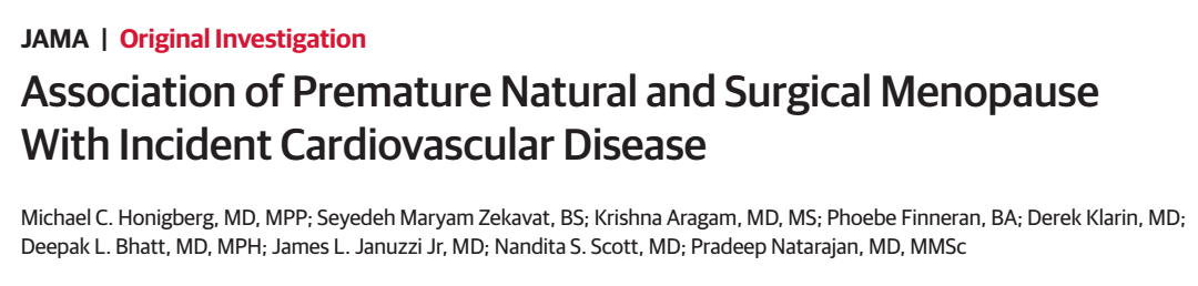 第二篇 :JAMA: 过早自然绝经和手术绝经增加心血管疾病风险