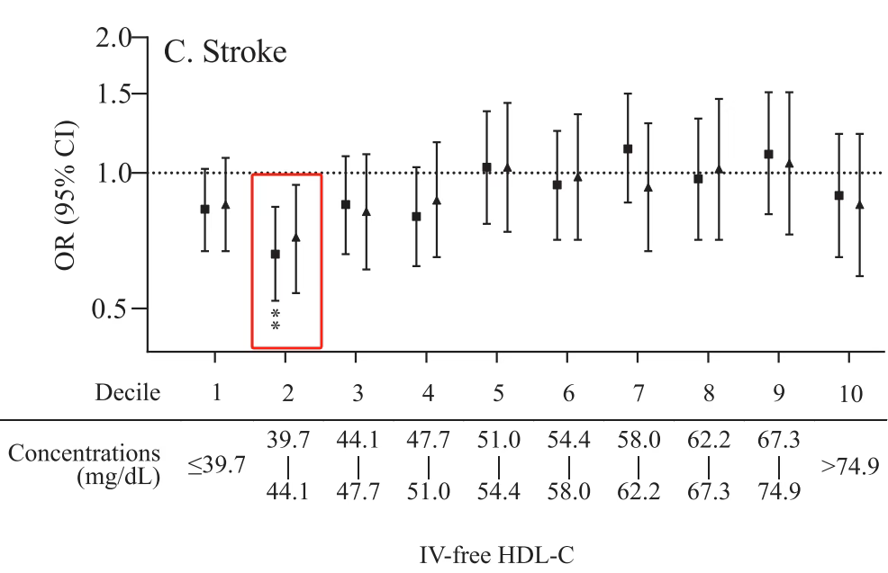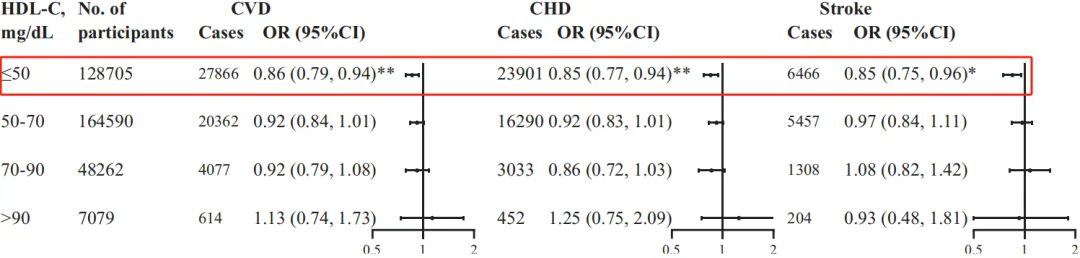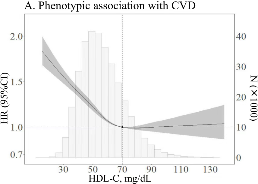 相反,当HDL-C浓度高于70 mg/dL时,存在平台效应,没有观察到CVD风险的进一步降低。