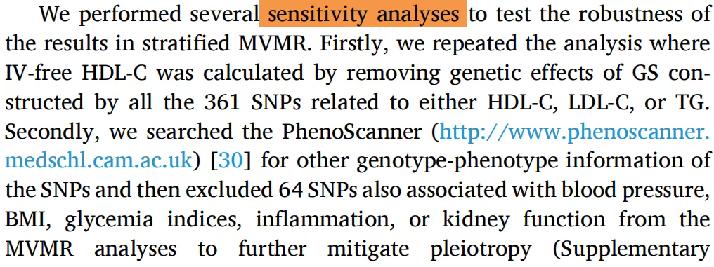 研究进行了几项敏感性分析,以检验分层MVMR中结果的稳健性。