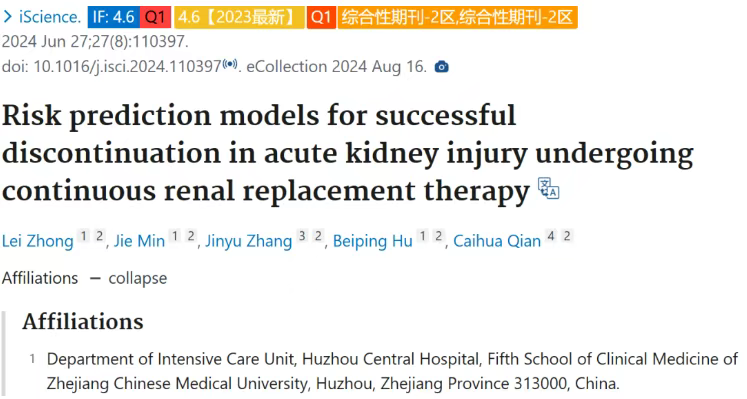 2024年6月27日,浙江中医药大学的学者用MIMIC-IV 数据库和自有数据,在顶级期刊Cell子刊《iScience》(医学二区,IF=4.6)发表题为:“Risk prediction models for successful discontinuation in acute kidney injury undergoing continuous renal replacement therapy ”的研究论文,研究团队利用LASSO回归选择特征,建立了9个机器学习模型,旨在构建和评估接受连续性肾脏替代治疗(CRRT)干预的危重急性肾损伤(AKI)患者及时停止CRRT的预后模型。
