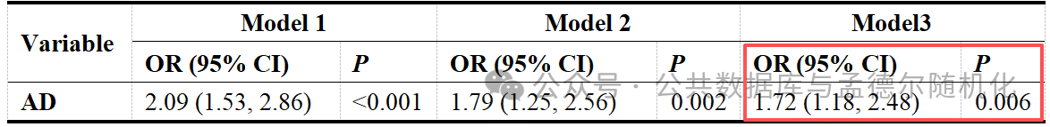 模型3:进一步调整了教育水平、BMI、吸烟和哮喘