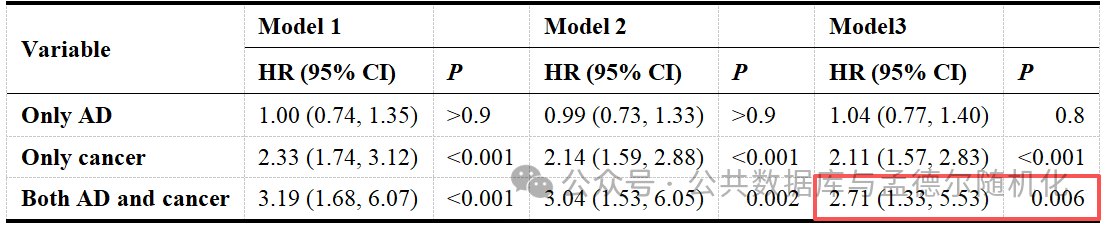研究进一步发现,当AD和癌症二者共存时,参与者的全因死亡风险最高。