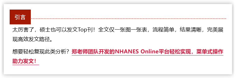 风暴统计公共数据库公众号回复“ 原文”即可获得文献PDF等资料,想用NHANES数据库发文,欢迎联系郑老师团队,微信号:aq566665