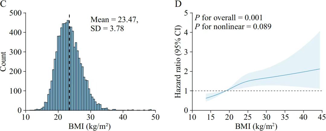 而BMI与卒中发生风险之间存在线性和正相关(对于非线性,P=.0.089)。