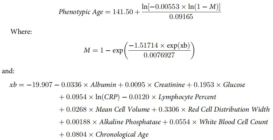 表型年龄是使用实际年龄和9个生物标志物(白蛋白、肌酐、葡萄糖、[log] C 反应蛋白 [CRP]、淋巴细胞百分比、平均细胞体积、红细胞分布宽度、碱性磷酸酶和白细胞计数)计算的。这些生物标志物是使用基于10倍交叉验证的死亡率比例风险弹性网模型选择的。
