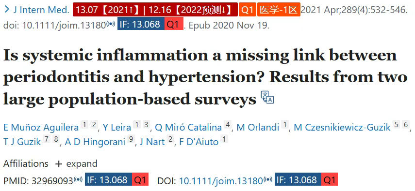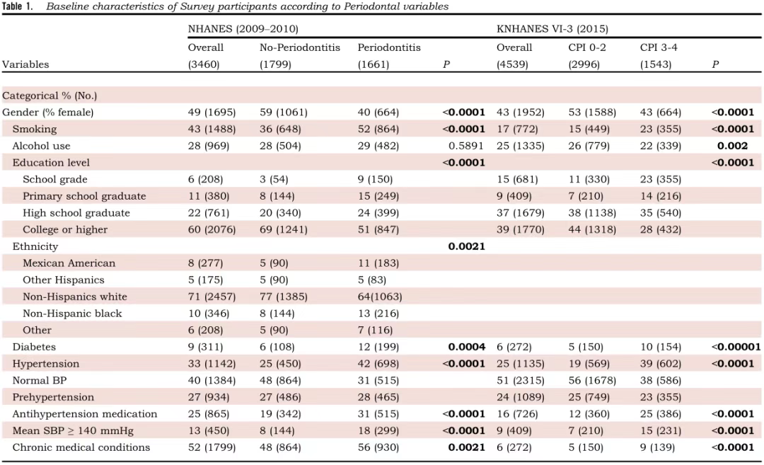 结论:牙周炎与高血压密切相关,系统性炎症在其中部分起着中介作用。